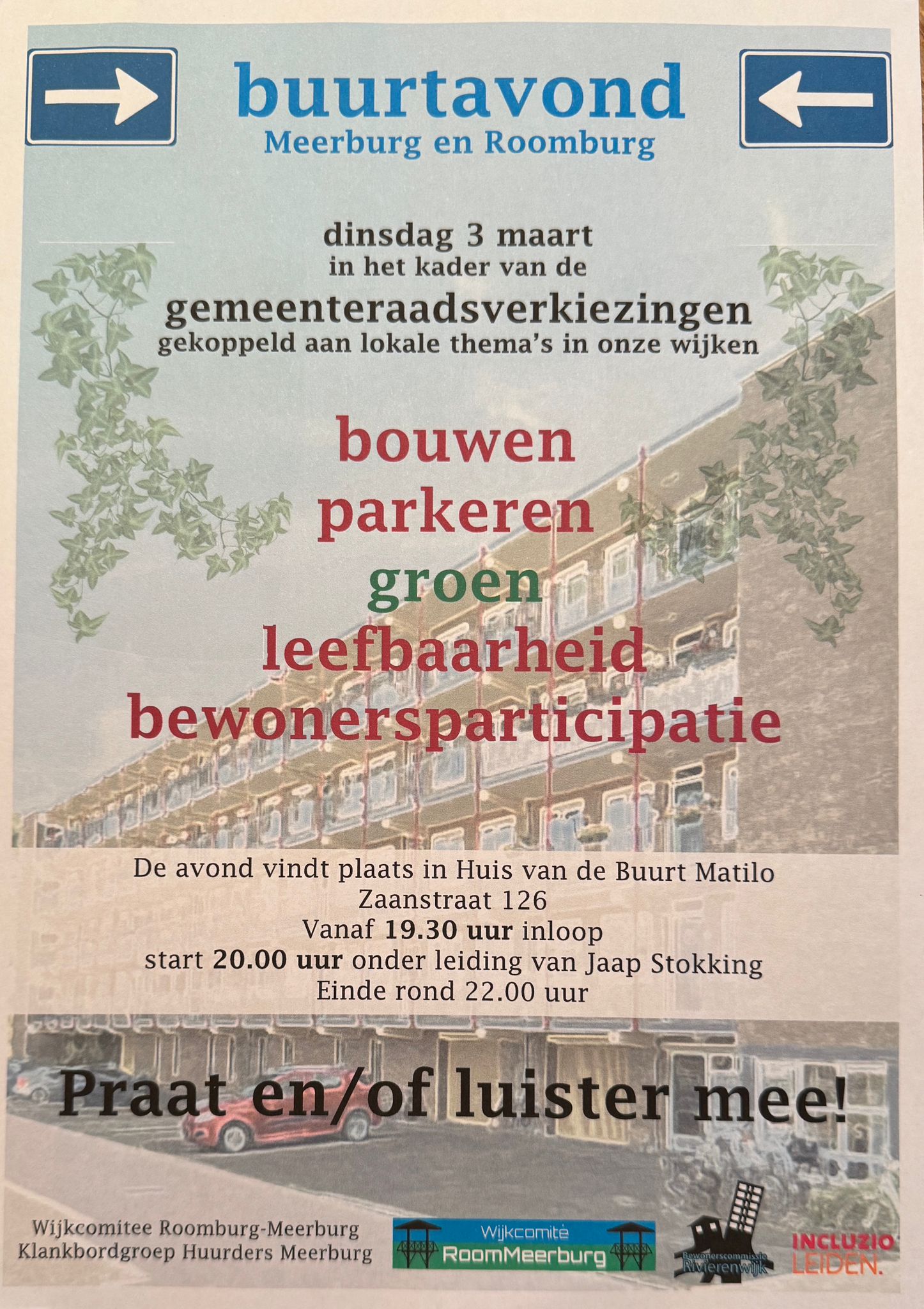 Op 3 maart wordt er vanaf 19..00 uur in ons Huis van de Buurt Matilo een verkiezingsdebat georganiseerd. De komende gemeenteraadsverkiezingen zijn belangrijk. Er komen allerlei thema’s aan de orde die voor onze wijken Meerburg en Roomburg belangrijk zijn!