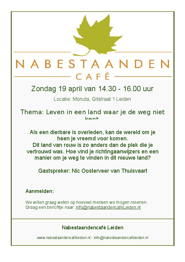Gaarne aanmelden via: info@nabestaandencafeleiden.nl
